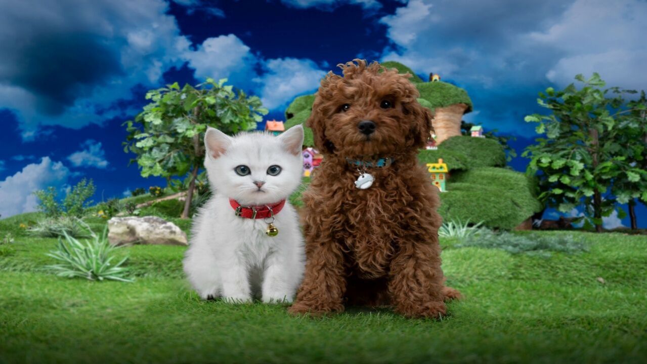 מיני טף עם טופי המיני טף מחפשים את טופי שמתחבא מאחורי עצמים שונים, ומכירים צורות שונות של מגנטים על המקרר.